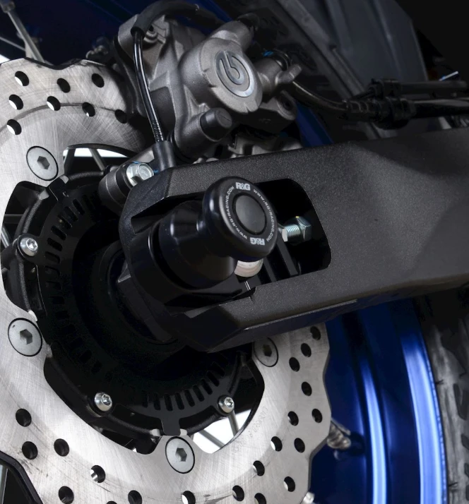 Wanneer er geen schroefdraad in de achterbrug is om een bobbin te monteren kan de R&G “Offset Cotton Reels” gebruikt worden. Zo kan er via de kettingspanner/achteras toch een bobbin op de motor gemonteerd worden en kan de motor dus met een paddockstand veilig en stevig gestald worden. Ook beschermen de bobbins de achterbrug bij een val.