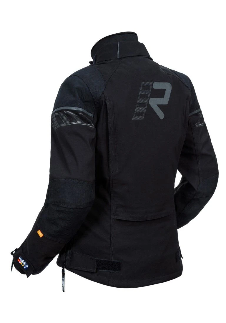 Qua pasvorm is de jas van alle gemakken voorzien met aanpasbaarheid op de bovenarm, zoom en mouweinden. Hierbij blijft de jas ook perfect op zijn plaats dankzij een kruisband en een rits om hem aan een motorbroek vast te maken. Kijk ook eens naar de gelijknamige Rukka Raptorina motorbroek