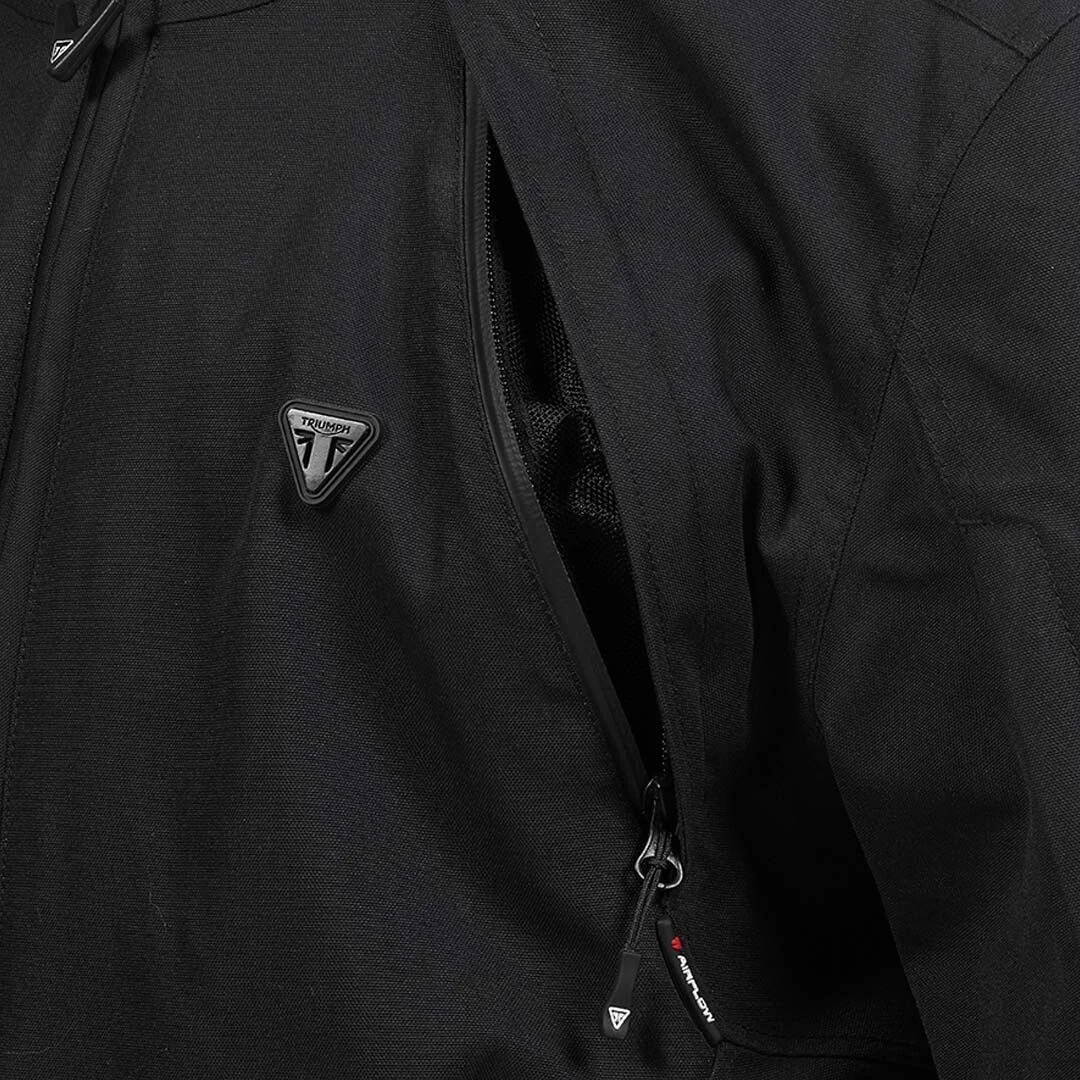 De Triumph Warrior Adventure Touring-motorjas is geproduceerd van 2-laags TriTech-schaalmateriaal dat een volledig waterdichte en ademende technologie biedt om je te beschermen tegen de zwaarste elementen.